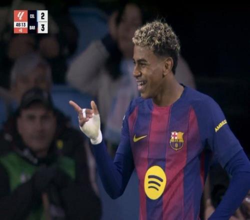 此役客场对阵塞尔塔,亚马尔在上半场补时阶段打入一球,帮助巴萨取得3-2领先。