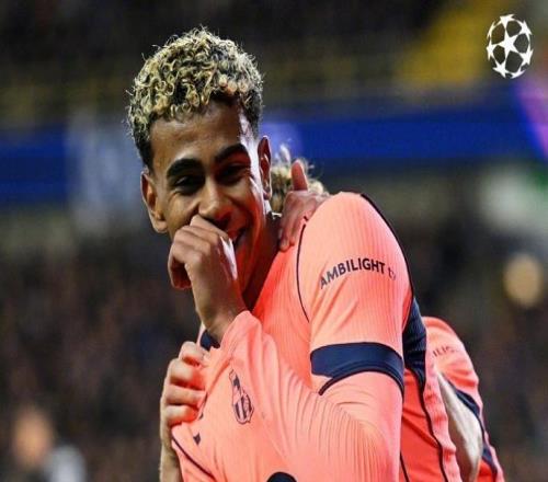 欧冠联赛阶段第四轮,巴塞罗那客场对阵布鲁日,下半场亚马尔打入一球,据统计,亚马尔成为欧冠联赛历史上打入7球最年轻的球员。此役客场对阵布鲁日,亚马尔在比赛第61分钟破门。至此,